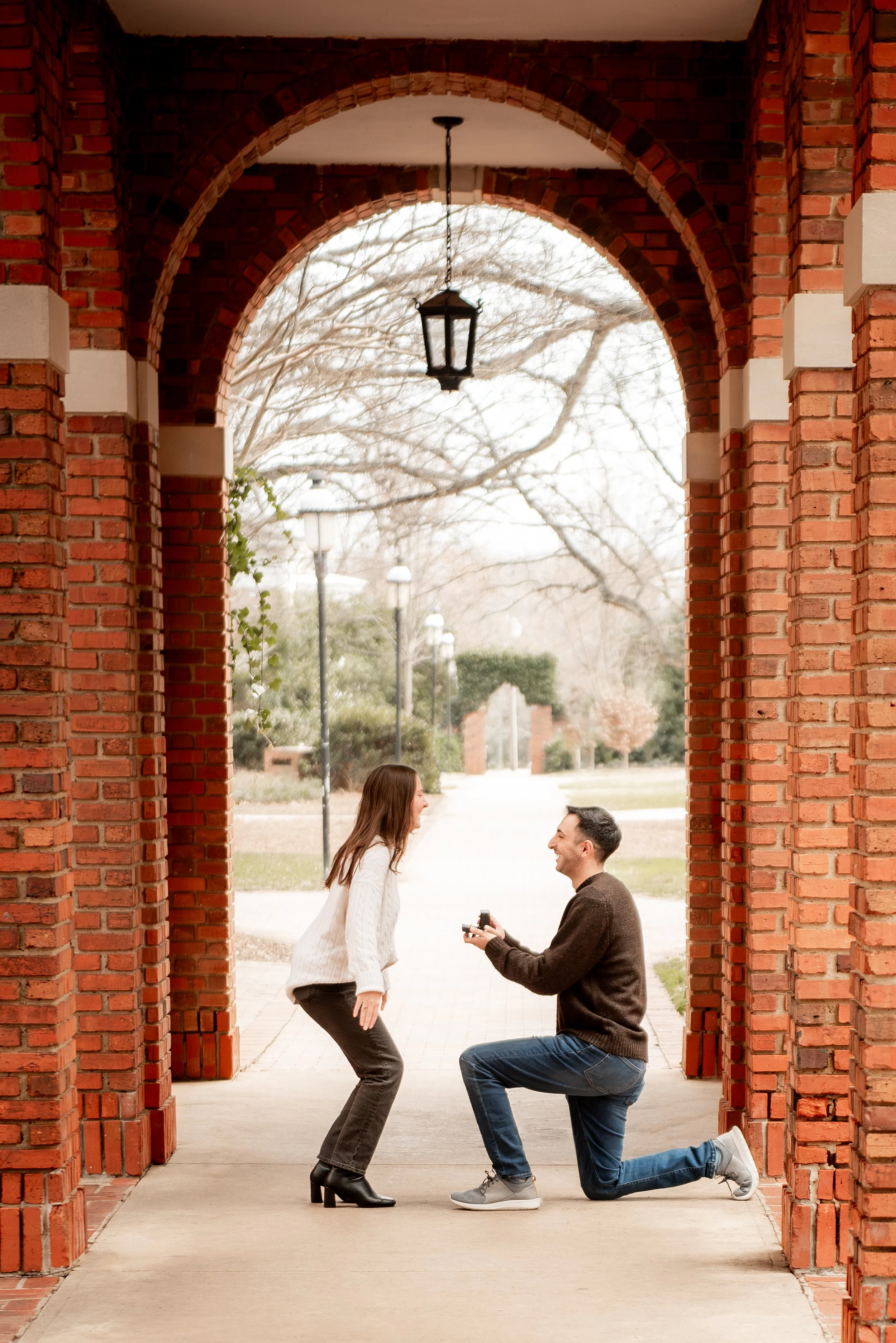 Jack reached out to me with a heartfelt request: he wanted to pop the big question to Julia on the grounds of Elon University, surrounded by the memories of their college days. With excitement in the air, we embarked on a pre-proposal scouting mission, walking the campus until we found the perfect spot. We discussed every detail, from where they would stand to how Jack would lead Julia to the spot without giving away the surprise.
